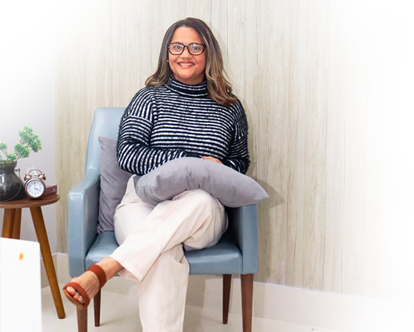 Nascida na zona rural de Aratuípe, Bahia, saí de casa aos 10 anos de idade para estudar na cidade, pois não havia escola onde eu morava. Fui morar com uma família que me acolheu e me deu condições de estudar. Fui alfabetizada aos 10 anos e concluí o ensino médio com um técnico em contabilidade. Após tentar o vestibular para Farmácia e não ser aprovada, ingressei no curso de Secretariado Executivo. Durante o curso, me interessei pela matéria de Psicologia Organizacional.